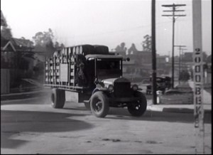 Late in the film, Carey and others run along dingy Chinatown alleys and street corners. Built in the 1880s, the original Chinatown grew east of the Plaza de Los Angeles on former grazing land owned by Mexican land baron Juan Apablasa and his son Cayetano. Denied property ownership, and restricted from living elsewhere, the Chinese suffered the neglect of their landlords, who left the privately owned streets of Chinatown unpaved. Crammed among noisy railroad tracks, towering gaswork plants, and the frequently overflowing Los Angeles River, Chinatown was the city’s least desirable address.